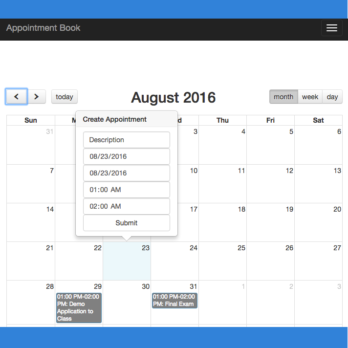 A full-stack calendar application with Node.js backend deployed on AWS EC2, featuring a RESTful API for appointment management.